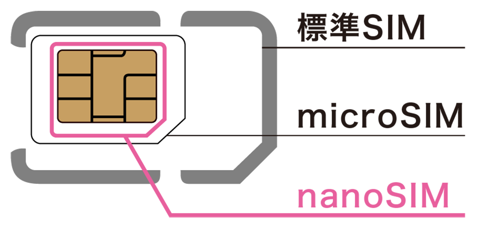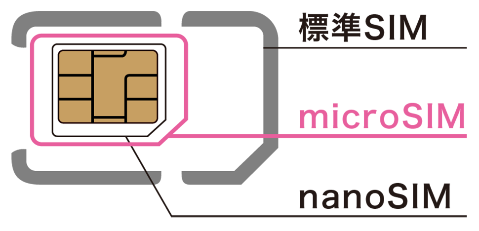 ギガプラン・mioモバイルで提供しているSIMカードは「マルチSIM」のため「標準SIM」「microSIM」「nanoSIM」に対応しています。