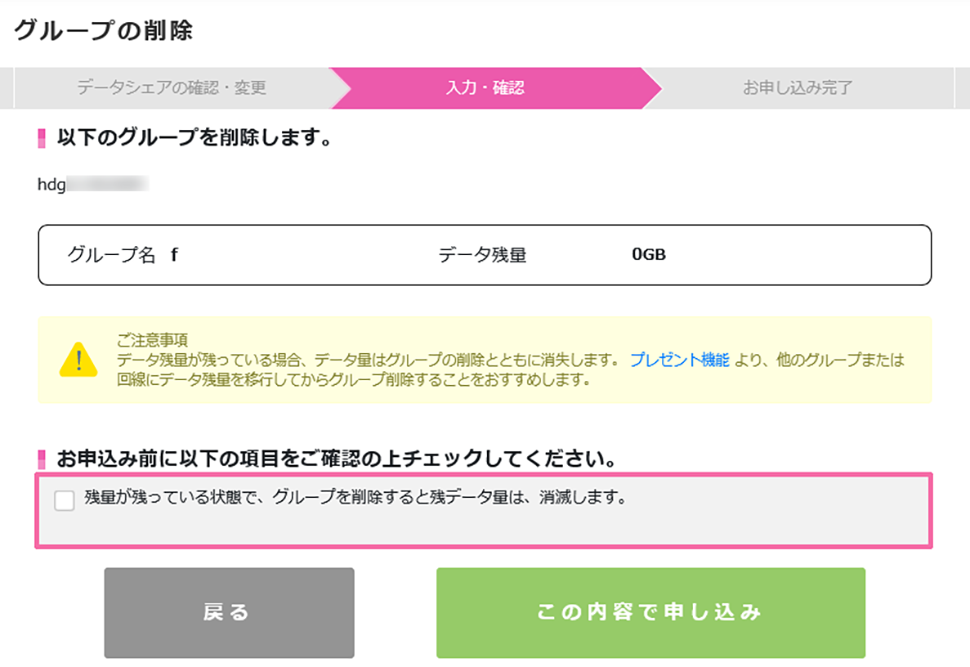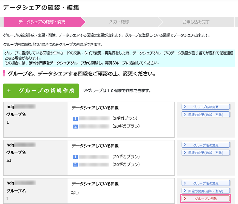 データシェアグループの 削除方法について教えてください。【ギガプラン】