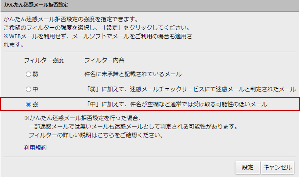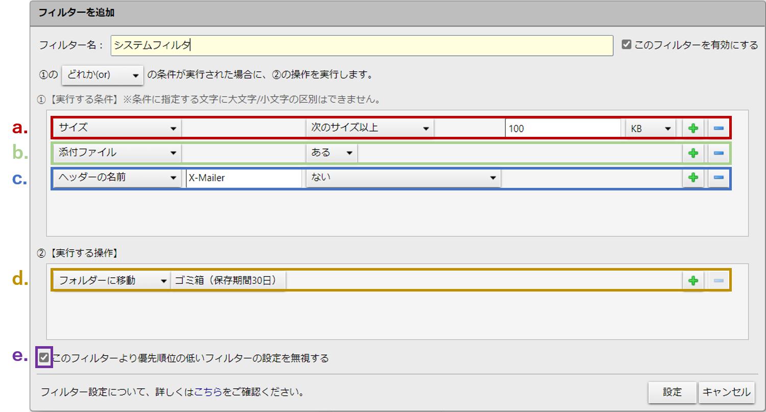 ・メールフィルタ設定「7. 標準設定」