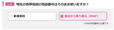 「他社から乗り換え(MNP)」を選択してください。