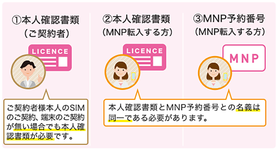 ご契約者さまと異なる名義でMNP転入される場合、お申し込み方法(MNP予約番号の取得有無)によって手順が異なります。