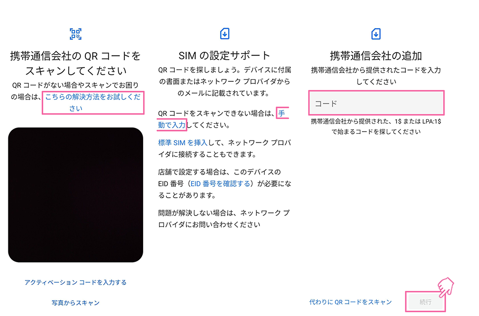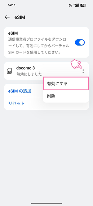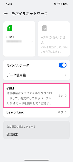 以下の設定を進めるにあたり、eSIMプロファイルを誤って削除してしまった場合、アクティベーションコードの再発行(有料)が必要になります。ご注意ください。