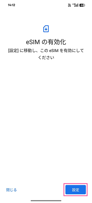 eSIM開通手続き後、プッシュ通知がない(表示を消した等含む)場合は、以下手順に沿って設定してください。