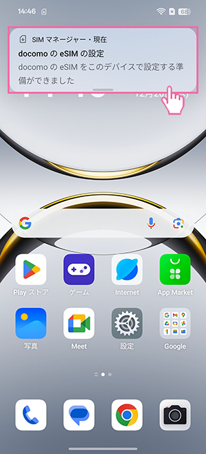 eSIM開通手続き後、以下画像のようなプッシュ通知がある場合は、以下手順に沿って設定してください。