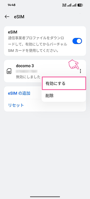 eSIM開通後、プッシュ通知がない(表示を消した等含む)場合は、以下手順に沿って設定してください。
