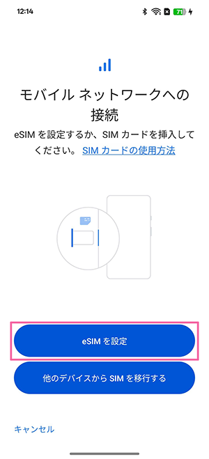 ※プッシュ通知がない(表示を消した等を含む)場合は、選択肢「②eSIMの開通手続き後、プッシュ通知がない場合(①以外)」に沿って設定してください。