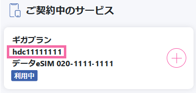 | hdc + 数字 | サービス/プランのサービスコード |