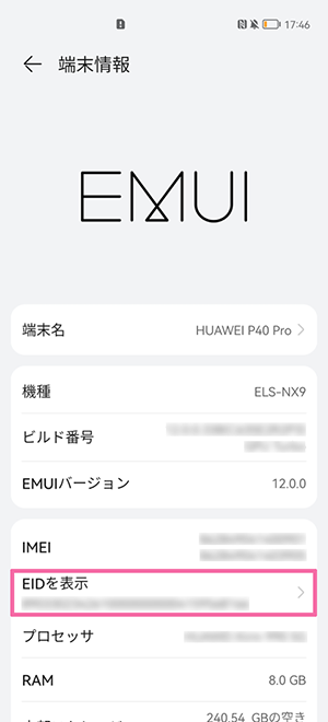 HUAWEI製スマートフォンのEID確認方法を教えてください。【ギガプラン・eSIM】